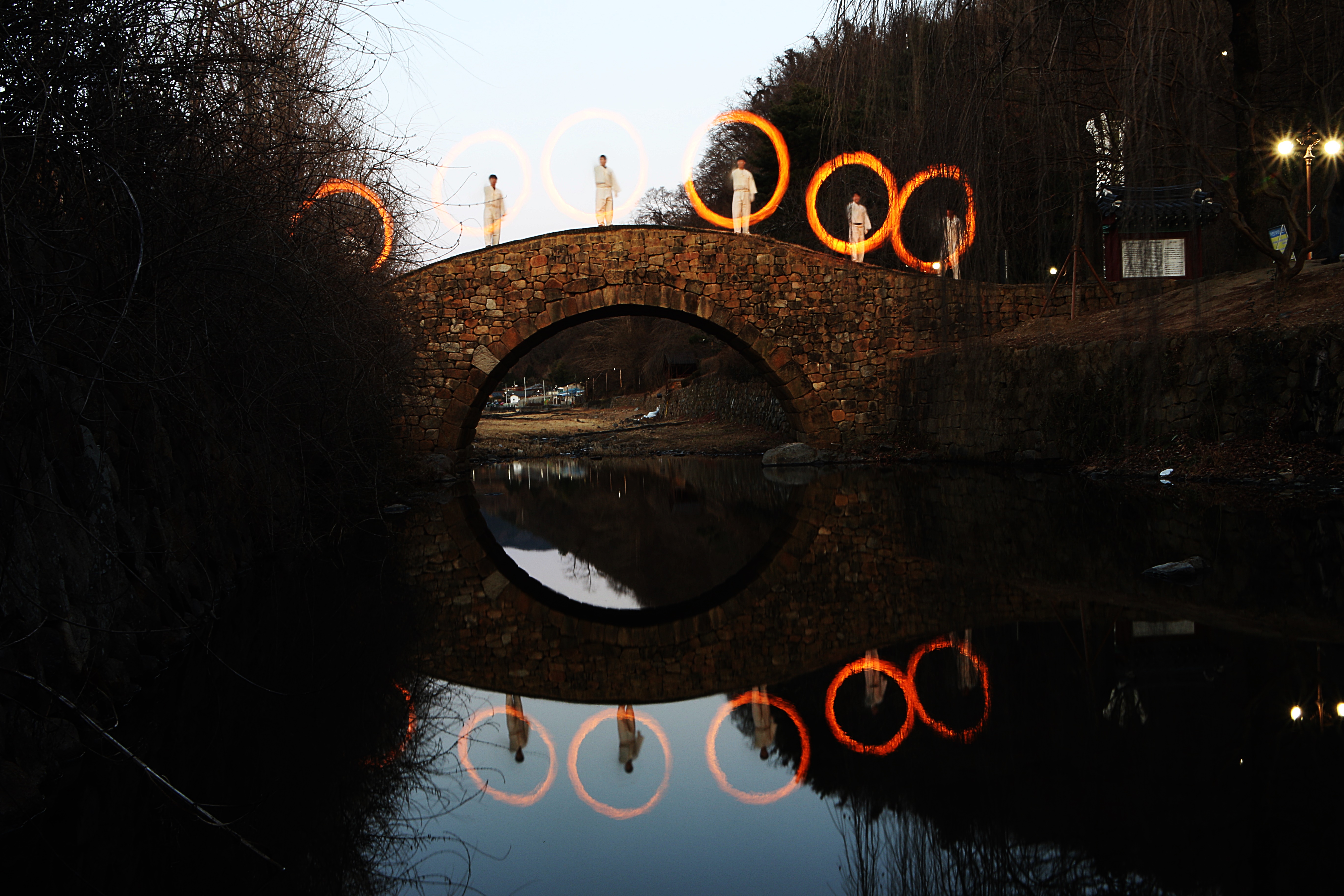 무지개다리(홍교)인 만년교에서는 전야제행사의 하나인 쥐불놀이가 펼쳐진다.