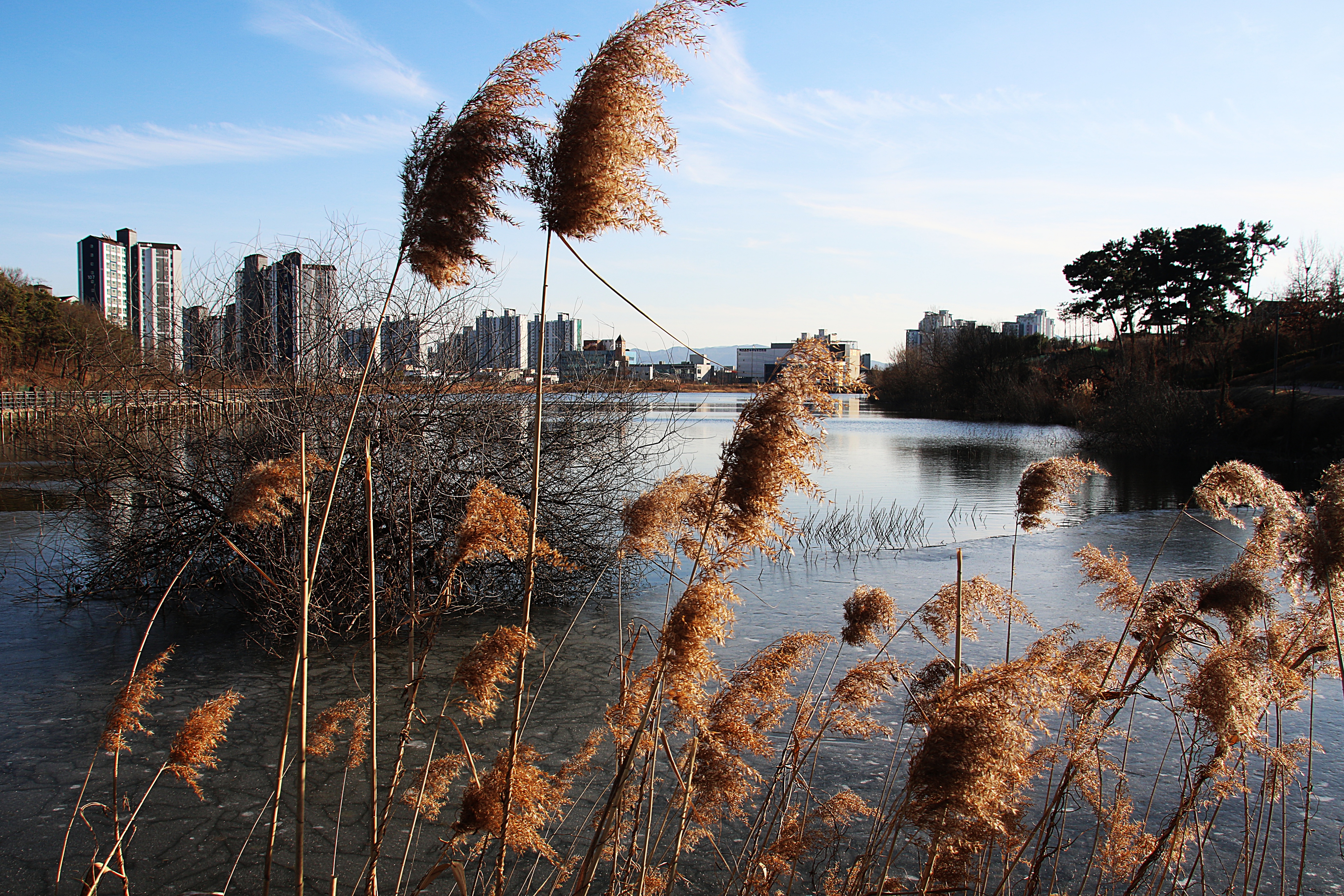 수면에 비치는 혁신도시 주택가